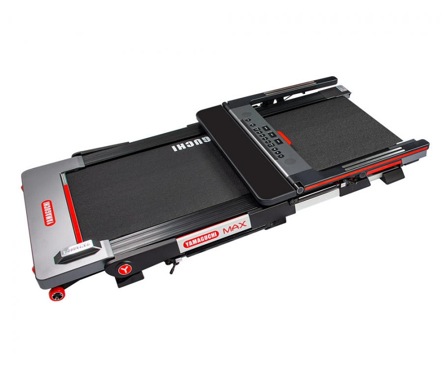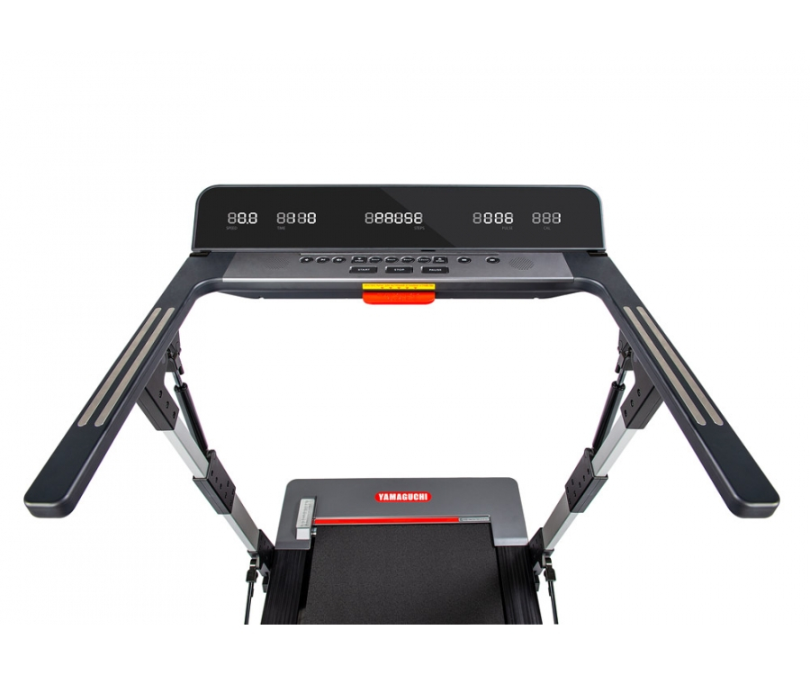 Yamaguchi Max – электрическая беговая дорожка с 4 автоматическими режимами скорости: 3, 6, 9 и 12 км/ч. Модель рассчитана на вес до 120 кг., работает при температурах 0-550, ширина дорожки составляет 48 см. LED-монитор, оснащённый диагональю 29 дюймов, показывает: