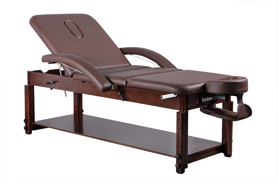 Стационарный массажный стол Yamaguchi Naomi обладает особой конструкцией, благодаря которой можно без особого труда отрегулировать секции для ног и спины
